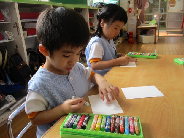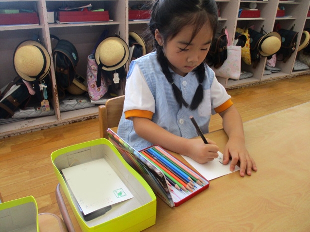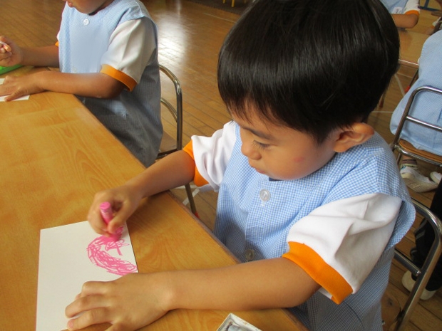 年長さんは色鉛筆、年中さん年少さんはクレヨンを使用しました💚💛