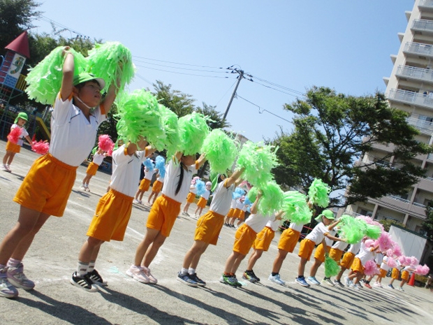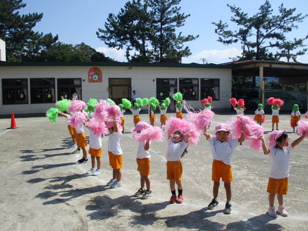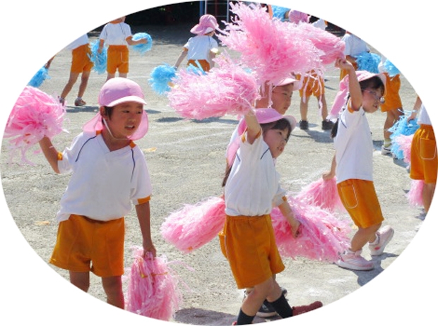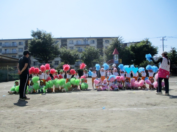 両手にポンポンを持って手を大きく振り、ポンポンをふわふわにして色鮮やかに踊っていました。