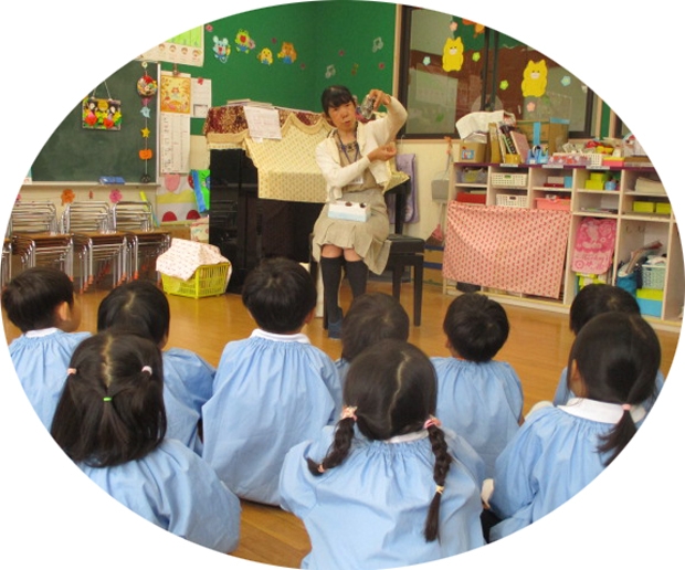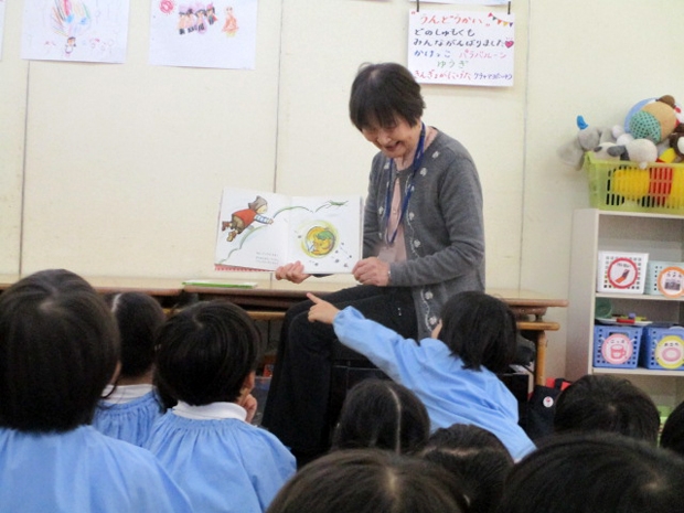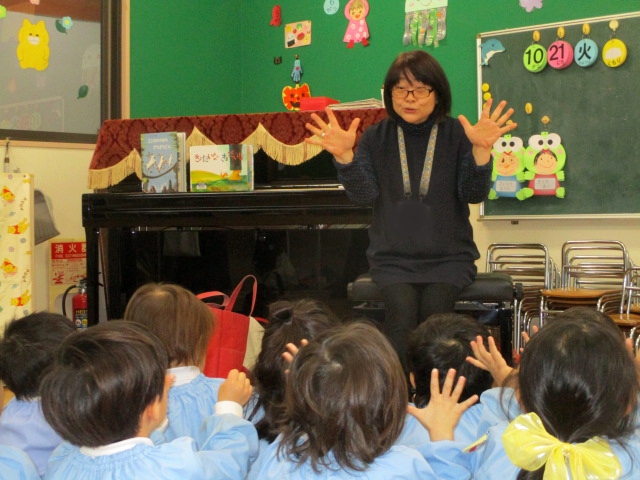 千葉市立図書館で児童担当として務められた図書館児童サービス支援「いちごの会」方々にお越しいただき、各学年にあった絵本を読んでいただきました。
