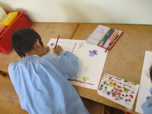 表紙に好きなキャラクターを描いたり、お友だちを描いたり、名前を書いたり…アルバムの表紙いっぱいに描きました。