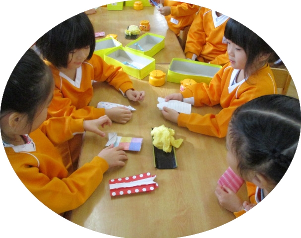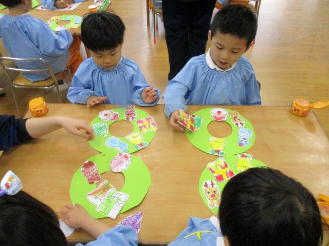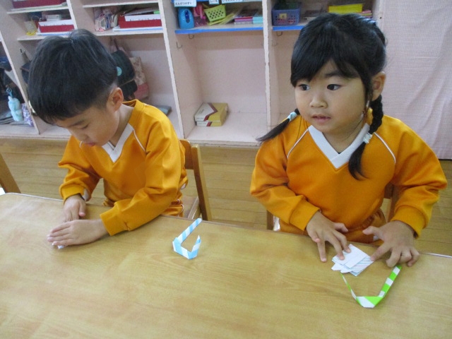 年長組は制作帳に貼る“クリスマスプレゼント”を折りました🎁年中組と年少組は窓面づくりでサンタクロースやリースを作りました。