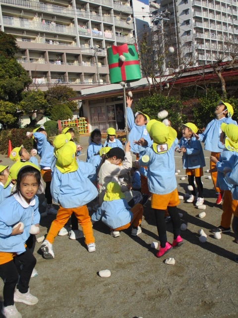 一つでも多くの玉を入れたい気持ちが優先し、フライングしかける子どももいたり😂投げた玉が入った時の喜びや投げることの楽しさを感じ、満足した表情の子どもたちでした😉