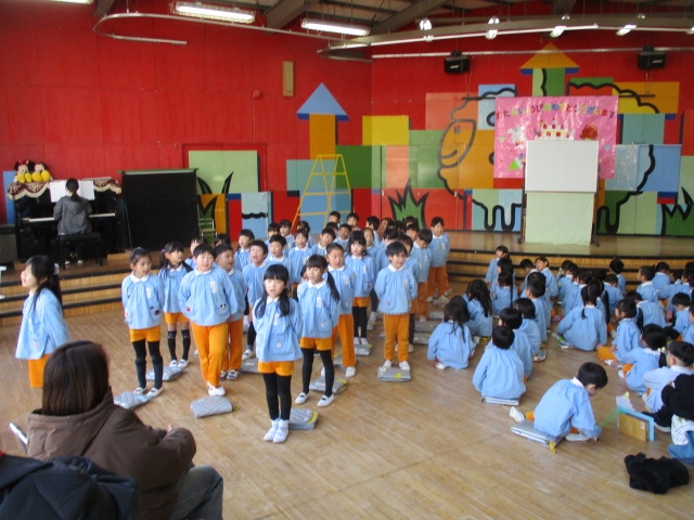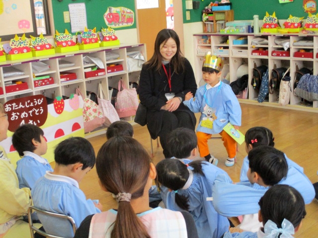 1月生まれの園児たちがステージに座り、みんなで「おめでとうございます🎉」とお祝いをしました。